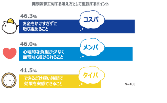 4.健康習慣で重視されるのは「コスパ」に続き、「メンパ」「タイパ」