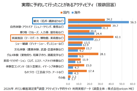 『実際に予約して行ったことがあるアクティビティ』(オリコン顧客満足度調査)