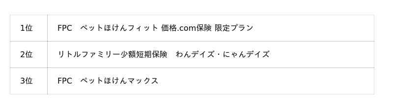 ■FPC「ペットほけんマックス」が3位にランクイン