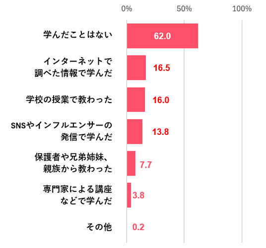 【グラフ3(左)】あなたは、これまでに「同意」のとり方や伝え方について学んだことはありますか。学んだことがある方は、具体的に学んだ方法をすべてお答えください。