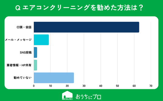 - エアコンクリーニングを勧める際に使用した方法は「口頭・会話」。