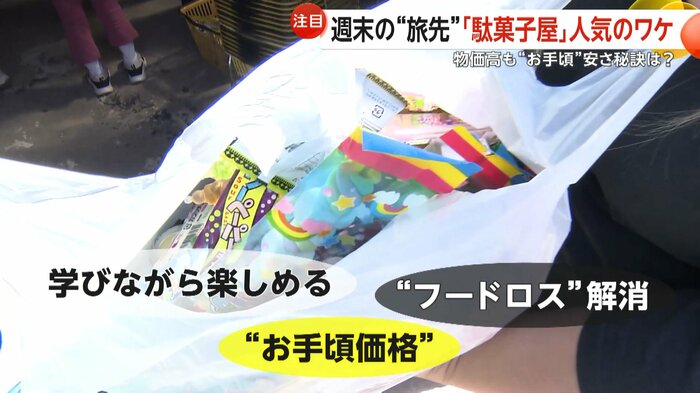 子供が学びながら楽しめる上、物価高の中でもお手頃価格でお菓子が買え、フードロス解消にもつながる良いことずくめの駄菓子店。週末の新たなお出かけスポットとして、注目度は上昇中だ。