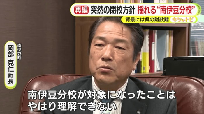 これには南伊豆町の岡部克仁 町長も「(県内には)他にも分校があり、生徒数が南伊豆分校よりも少ない学校はあるのに、そこが“標的”にならず、南伊豆分校が対象になったことは理解が出来ない」と憤りを隠せない。