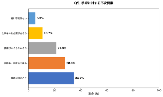 【調査結果】最大の不安は傷跡、次いで痛みと費用が上位に