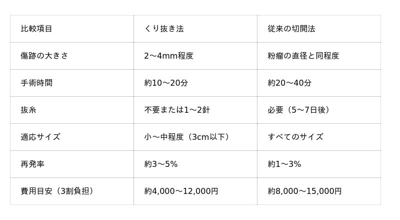粉瘤の治療法比較:くり抜き法と従来の切開法