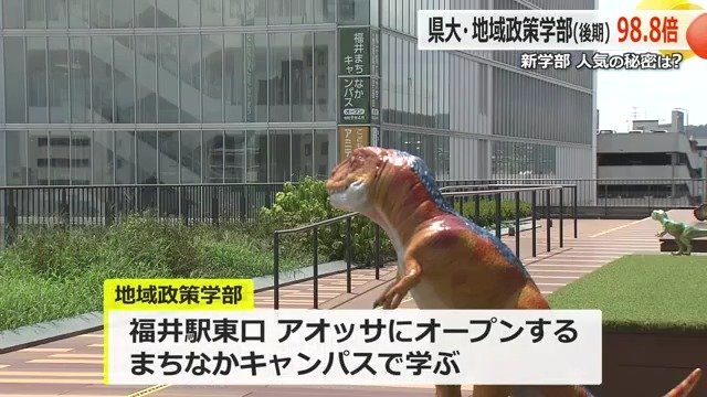県立大学は昨年度、全国初の「恐竜学部」も新設。国公立大学の平均を大きく上回る高倍率を維持している。