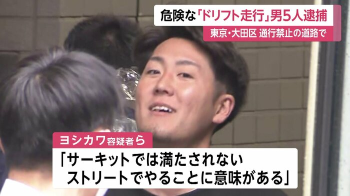 ヨシカワ容疑者らはドリフト仲間が集うグループ「日本マジキテル連合」で活動していて、調べに対し、1人は容疑を認め、4人は一部否認をしていますが、「サーキットでは満たされない。ストリートでやることに意味がある」と供述しているということです。