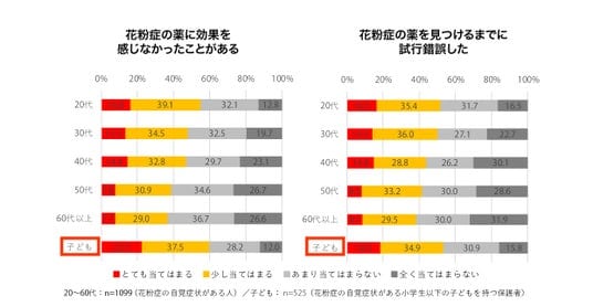 「花粉症の薬に効果を感じなかったことがある」と回答した子どもは約6割にのぼり、さらに過半数が「自分に合う薬を見つけるまで試行錯誤した」と回答しました。
