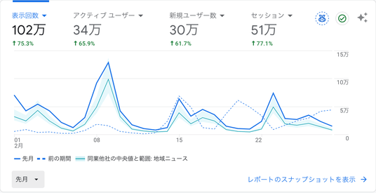 こうした安定した閲覧基盤の上で、2月は地域イベントや街の動きが重なり、現場取材と速報を積み重ねた結果、月間100万PVに到達しました。