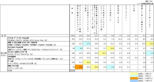 - スーパーとのコラボで最も実施して欲しいことは、推しのカテゴリーによって傾向が異なった