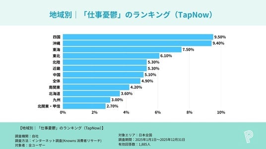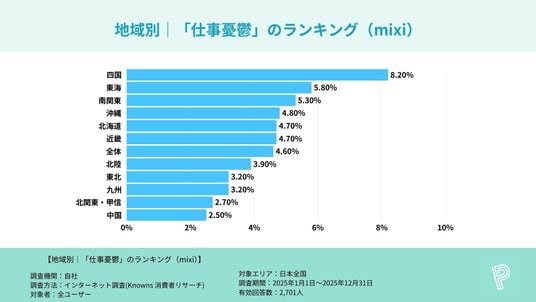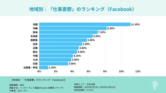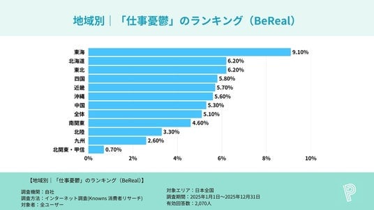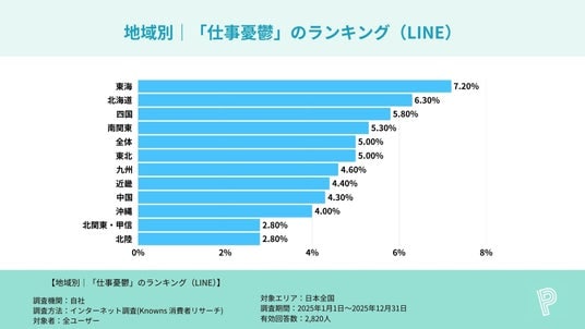 調査名 :主要SNSアプリ利用者における「仕事憂鬱」割合に関する地方別比較調査