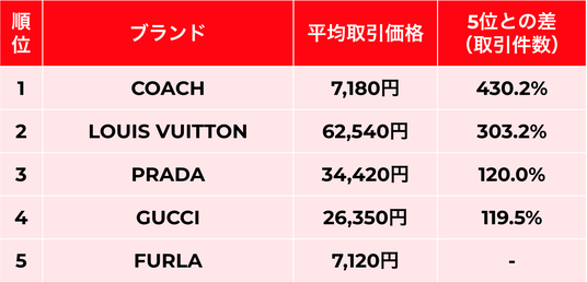 卒入園・卒入学シーズン ハンドバッグブランド取引件数ランキングTOP5(2025年2月 ~ 2025年4月)