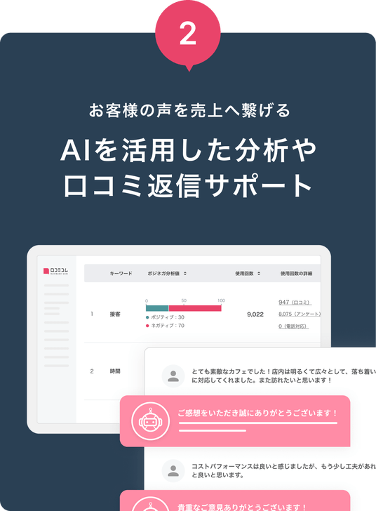 口コミを一元管理!AIが分析・返信をサポート