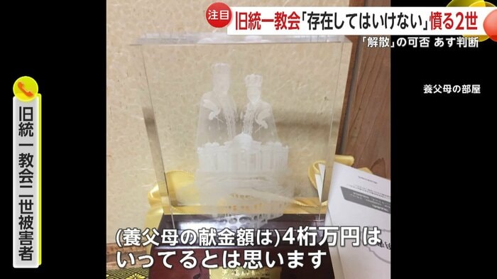 (養父母の献金額は)四桁万円は いってるとは思います。家にあった統一教会の品物だったりとか、養父母たちの入信期間の長さから見て…。