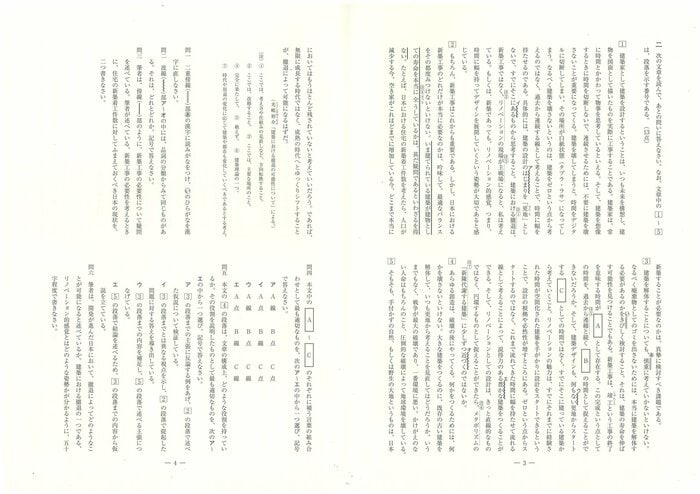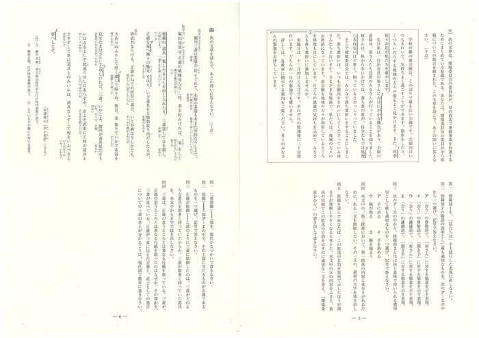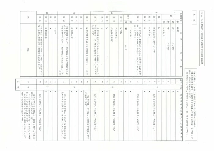 県教育委員会は国語に関する出題のねらいについて「一では話の展開や登場人物の心情を、表現の仕方を注意して読み取ることができるかをみる。二では筆者の考えを文章の展開の即して的確に把握する力をみる。三では社会生活に必要な、言葉によって伝え合う力をみる。四では平易な古文を読んで、話の内容をとらえることができるかをみる。五では自分の考えを文章で適切に表現する力をみる」としている。