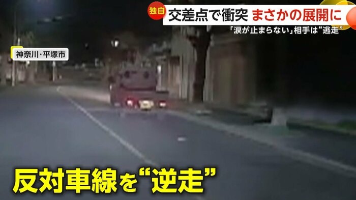 神奈川・平塚市の交差点で軽トラックが直進車に衝突する事故が発生した。事故に遭った女性がドアを開けようとしたところ、軽トラックは逆走するように逃走。女性はショックで涙が止まらなかったという。