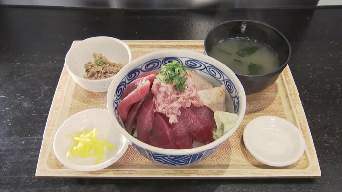 東京・千代田区の「まぐろ丼や 恵み」では、バーナーでこんがりとあぶったトロにねぎとろを重ね、仕上げにこんもりと「わさび」を乗せて海鮮丼を提供している。