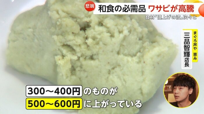 「わさび」や「しょうが」高騰に飲食店が悲鳴を上げている。わさびは卸売価格で1年前に比べ約7割上昇し、しょうがも1割以上高くなっている。背景には夏の記録的な高温に加え、世界的な日本食ブームもあるという。