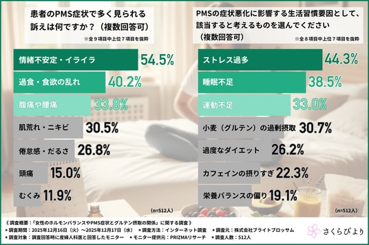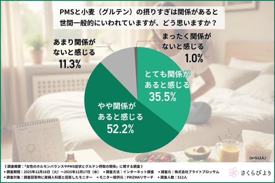 【産婦人科医512名に調査】産婦人科医の約90%が「PMSやホルモンバランス不調を訴える患者」が増えていると回答!産婦人科医はPMS症状と「小麦(グルテン)」の関係性をどう見ている?