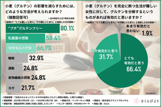 株式会社ブライトブロッサム(所在地:東京都杉並区、代表取締役:後藤 伸一)は、産婦人科医を対象に、「女性のホルモンバランスやPMS症状とグルテン摂取の関係」に関する調査を行いました。