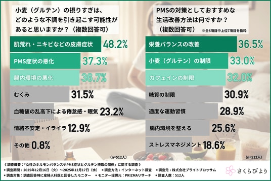 調査概要:「女性のホルモンバランスやPMS症状とグルテン摂取の関係」に関する調査