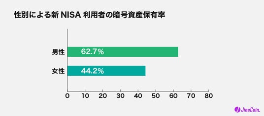 - 男性NISA利用者の62.7%、女性NISA利用者の44.2%が暗号資産を保有