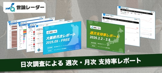 日次支持率グラフを含む詳細レポートPDFは、「世論レーダー」公式サイトの週次レポート販売ページにて、3,960円(税込)でご提供しております。