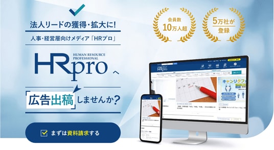 法人リードの獲得・拡大に、人事・経営層向けメディア「HRプロ」への広告出稿をぜひご検討ください。