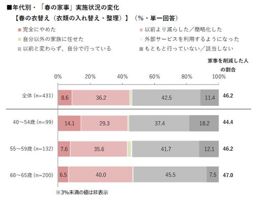 4割近くが春の衣替えを「減らした・やめた」若い年代ほど“やらない”選択。ミドルエイジ女性に広がる家事の簡略化