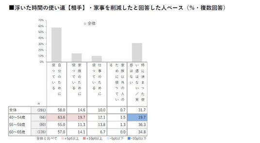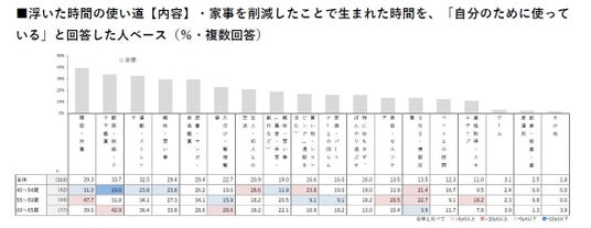 家事を手放して生まれた時間は、6割が「自分のために」40~54歳では外向きな時間の使い方が他年代よりも多い