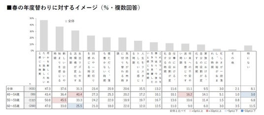 株式会社ハルメク(本社:東京都新宿区、代表取締役社長:宮澤 孝夫、株式会社ハルメクホールディングス100%子会社)が運営する、ミドルエイジ女性向けWEBメディア「HALMEK up(ハルメクアップ)」と、販売部数 No.1雑誌「ハルメク」(※1)などのマーケティングやリサーチのコンサルティングを通じてインサイトを日々探求する、ハルメク 生きかた上手研究所は、40~65歳のHALMEK up会員の女性431名を対象に「春の節目に関する意識・実態調査」をWEBアンケートにて実施しました。