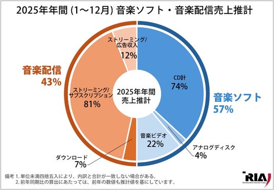 2025年年間(1~12月累計)の国内音楽ソフト・音楽配信売上推計は、3,988億円となりました。
