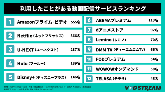 利用したことがある動画配信サービスランキング(VOD STREAM)