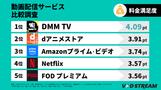 動画配信サービス比較_料金満足度(VOD STREAM)