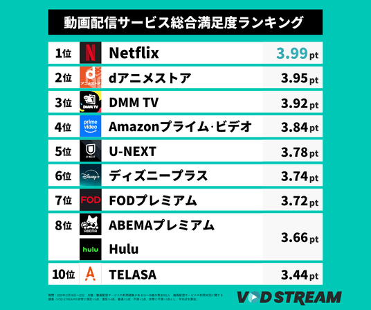 動画配信サービス総合満足度ランキング(VOD STREAM)