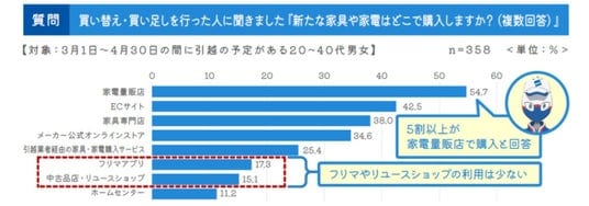 引越は大型家電の買い替え・買い足し検討のタイミング。リユース品購入は少ない