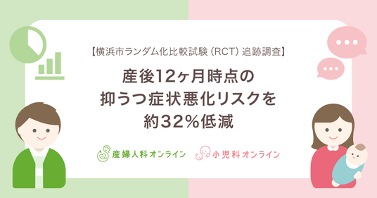 「産後うつ病の高リスク者を33.5%減」:遠隔健康医療相談サービス(産婦人科・小児科オンライン)の効果として実証 ~横浜市・東京大学との共同実証事業(ランダム化比較試験)~