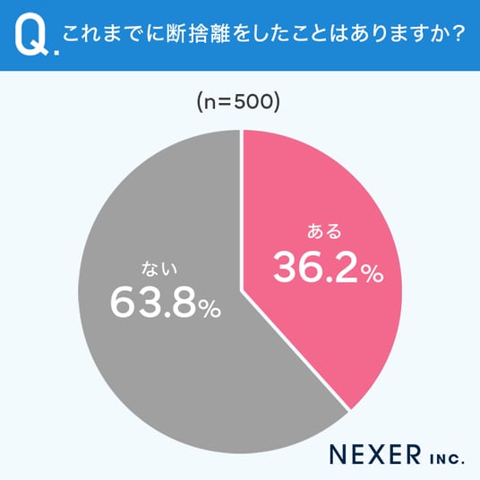 結果として、36.2%が「断捨離をしたことがある」と回答しました。およそ3人に1人が、断捨離を経験していることがわかります。
