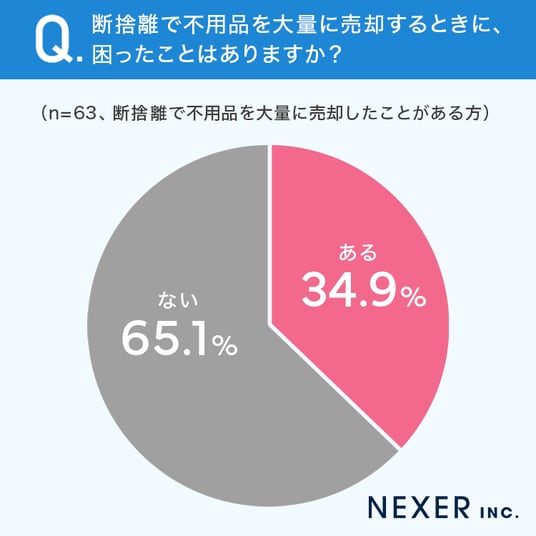 ■34.9%が、「断捨離で不用品を大量に売却するときに困ったことがある」と回答