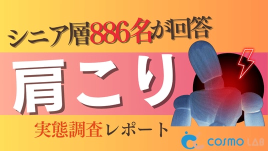 シニア専門のマーケティングプラットホーム コスモラボ(会社名:コスモヘルス株式会社、本社:東京都港区、代表取締役社長 小塚 崇史)がシニア層の『肩こり』に関するアンケートリサーチのレポートをリリースしました。本レポートでは、50代以上のシニア層を対象とし、肩こりに関するアンケート調査を実施しました。肩こりを感じ始めた時期、肩こりの改善に向けた現状の行動、今後取り入れたい対策、肩こり関係の商品やサービスで重視する点など。肩こりに悩むシニア層の実態が、明らかになりました。