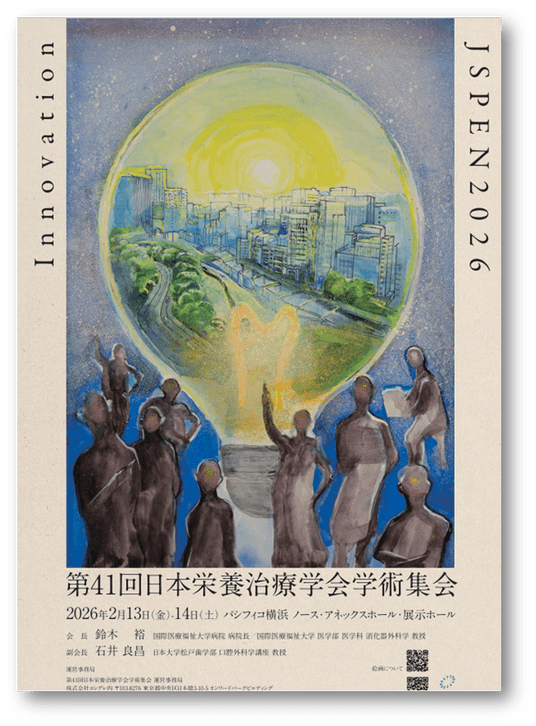 ※1日本栄養治療学会(英文名称 Japanese Society for Parenteral and Enteral Nutrition Therapy(JSPEN)):静脈経腸経口栄養を中心とする栄養療法及びそれらを支える基礎的栄養学全般に関する会員相互及び内外の関連学術団体との研究連絡、知識の交換、提携の場となることを通して、代謝及び栄養学の進歩普及に貢献するための事業を行い、学術文化の発展と医学及び医療の向上に資することで国民の健康と福祉に寄与することを目的としています。