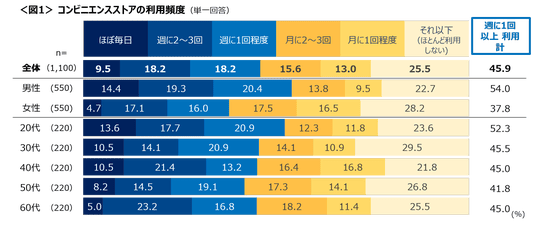 コンビニエンスストアを週に1回以上利用している人は45.9%。
