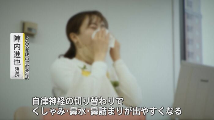 寝ている間は副交感神経が優位ですが、朝起きる時は交感神経が優位に変わる。自律神経の切り替わりで、くしゃみ・鼻水・鼻づまりが出やすくなる」。