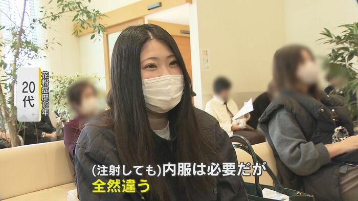 注射の効果をたずねると、女性は「つまった鼻のどちらかは開通する。全然違います。注射しても内服は必要だけど、生き心地が全然違う」。