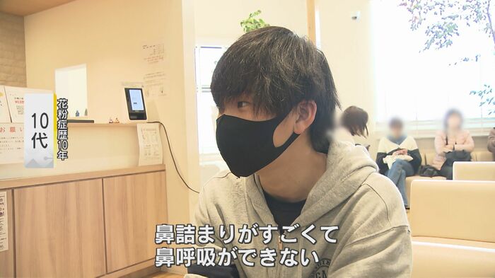 幼いころから花粉症という10代の学生は「めっちゃきつい。鼻詰まりがすごくて、鼻呼吸ができない」と言い、別の30代男性も「声があまり出ない。毎年、花粉の症状は出るが、今年は喉が痛い」と症状の辛さを訴える。
