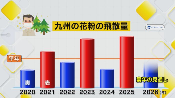 花粉の量は毎年『表年』と『裏年』が交互にやってきて、2026年は飛散が少ないとされる『裏年』にあたる。