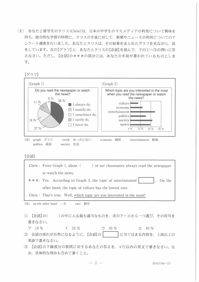 (3) 英文やグラフの内容を正しく捉え、それに関する自分の考えを英語で表現する力