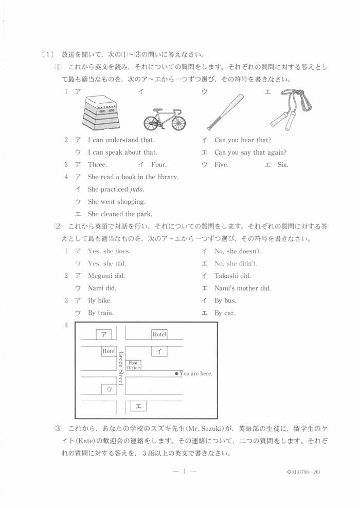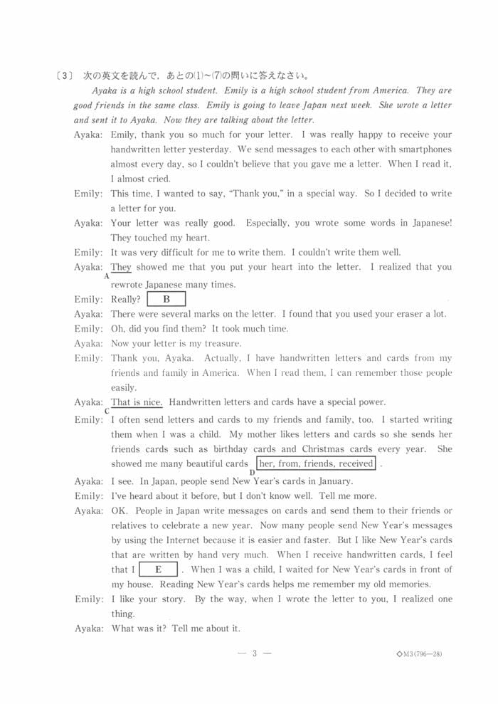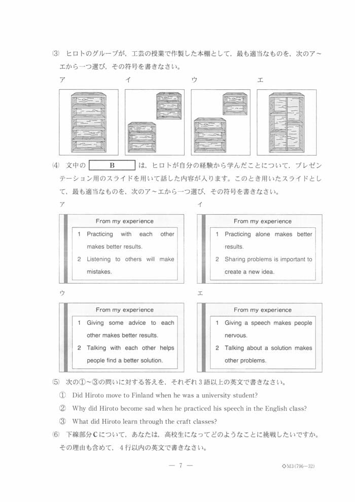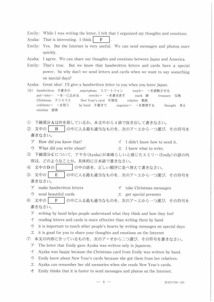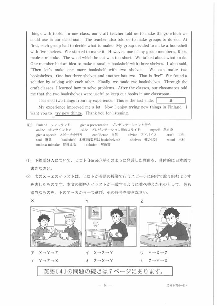 英語の問題は以下の通り