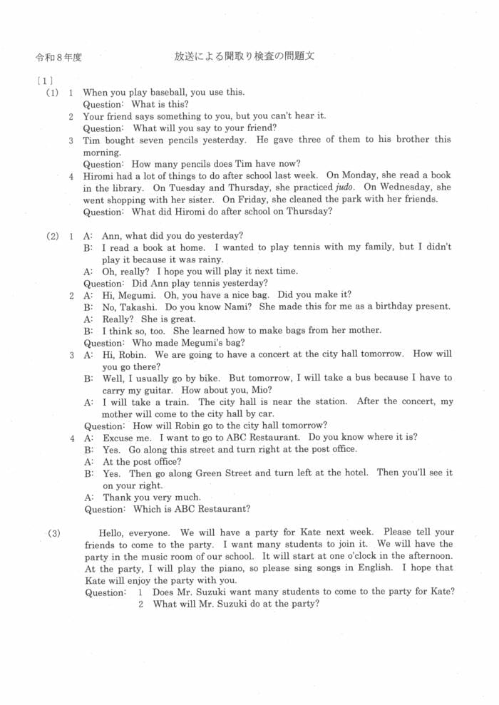 (1) 話される英語から、必要な情報・話の概要を正確に聞き取る力