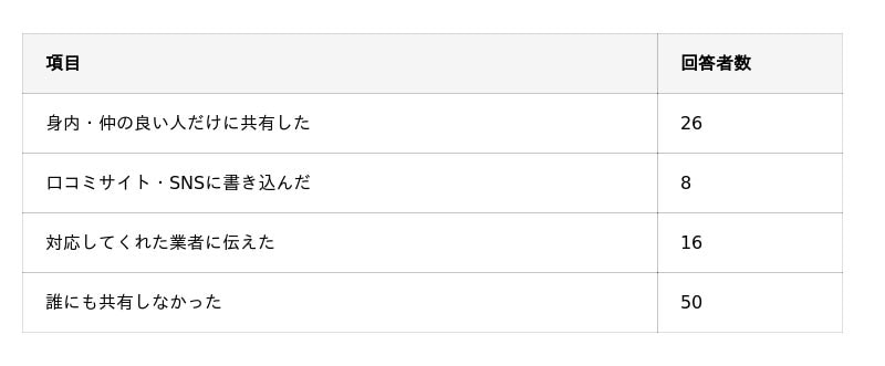 発生したエアコンクリーニングの想定外の出来事は誰かに共有しましたか?